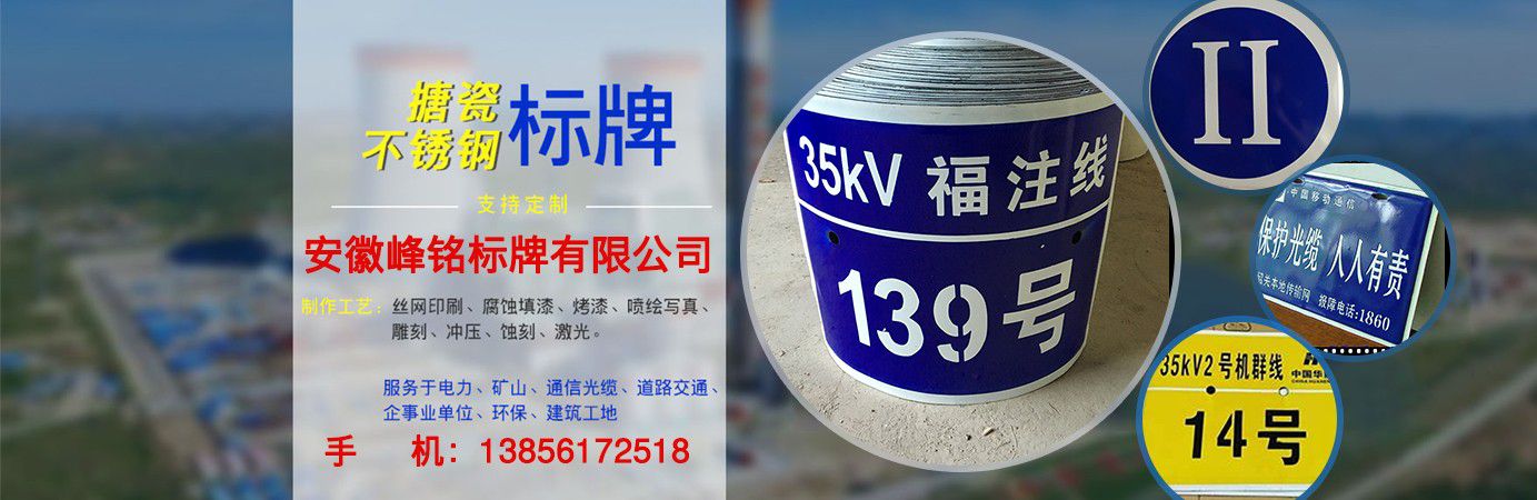 安徽峰銘標牌有限公司成立于2018年,2020年成立峰銘標牌山東分公司,是致力于標牌生產研發的專業企業。峰銘標牌多年來一直專注于標牌及印刷事業,擁有完善的生產技術和先進的生產設備,有多名金屬科研單位和標牌專業、標牌企業從業經歷人才,是專注于標牌標識及印刷品生產的專業型企業。  公司主要產品:腐蝕標牌,搪瓷標牌,絲印標牌,UV標牌,反光標牌,不銹鋼標牌,鋁合金標牌,PVC標牌,亞克力標牌,高光標牌,堆金標牌,烤漆標牌,電力標牌,電廠標牌,電網標牌,通信標牌,安全警示牌,相序牌,塔號牌,桿號牌,刀閘牌,閥門牌,銘牌,面板牌。交通標牌,交通標志牌,高速路標牌,道路標牌,路名牌,限速牌,限高牌,三維立體軟標,熱轉印標牌。地產標牌,鋼廠標牌,宣傳欄,精神堡壘,不銹鋼扎帶,廣告字,水晶字,沖孔字,彩頁畫冊、不干膠印刷等專業生產。  近年來,我公司堅持“科技興廠”的方針,引進先進的生產設備和技術,嚴格執行國家及行業標準,專注同行加工業務,與時俱進,打造出了一系列精美產品。我公司已通過ISO9001質量管理體系認證,我們將繼續貫徹“誠信經營、保質保量、交貨迅速”的方針為您提供更優質的服務。  目前我司和國內較多大中型電廠、電力公司、鋼鐵企業、通信企業、車輛企業、公路交通、機電設備、廣告公司同行加工等形成了...